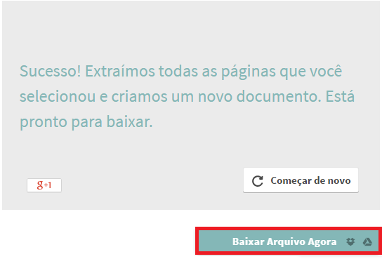 5. Clique em Dividir PDF!. A ferramenta inicia a divisão do arquivo e, em seguida, permite baixá-lo por meio do botão Baixar arquivo agora.
