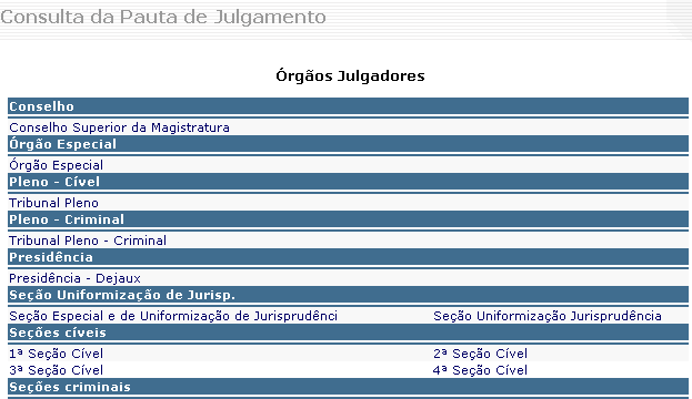 Para consultar a pauta de julgamento, selecione o órgão julgador clicando sobre ele.