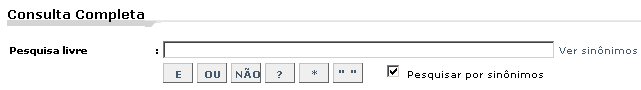 Por ser um campo de livre digitação, o sistema realiza a pesquisa no conteúdo dos arquivos de acordo com as palavras digitadas.